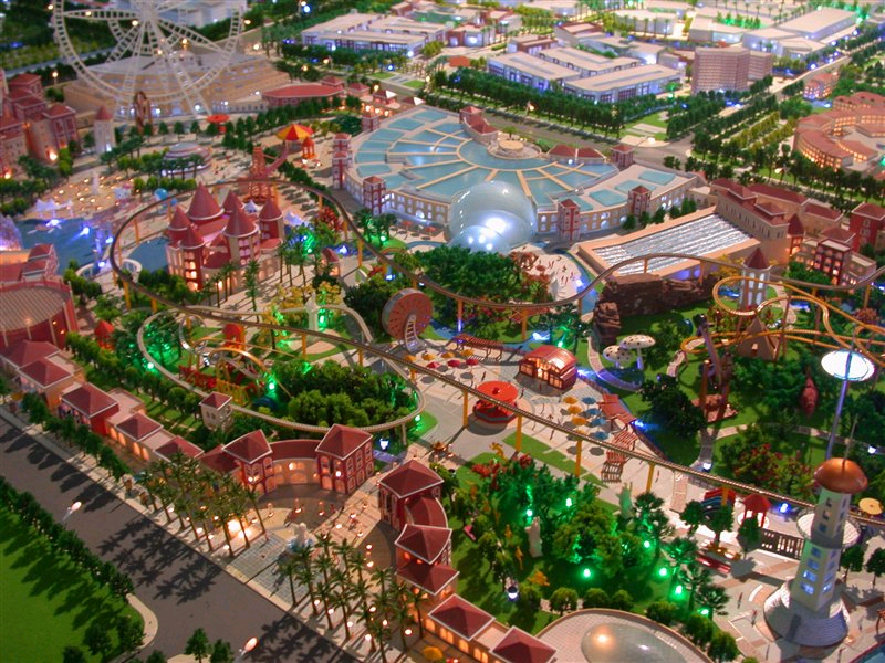 當(dāng)?shù)匦文P偷碾A梯圖樣不被接受,以及在建筑模型上無(wú)法做地形調(diào)整時(shí),斜坡造型便成為另一個(gè)好的解決方法。在一個(gè)相同的斜坡上面,使用其斜坡的比例是沒有問(wèn)題的。如果斜度延伸于每條等高線之間,制作時(shí)要從最 深點(diǎn)的底部結(jié)構(gòu)開始將整個(gè)平面加以固定,以免框架倒 塌。地形和建筑模型之間的連接也必須按照設(shè)計(jì)草圖精 確地完成。