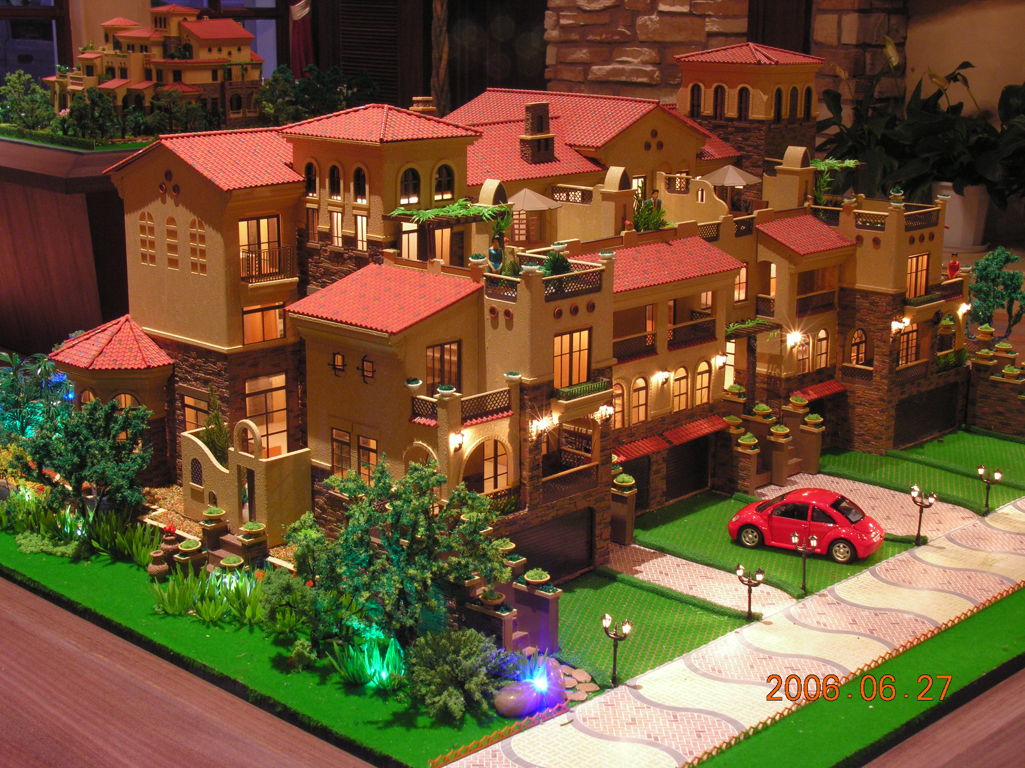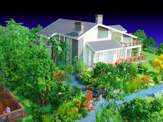 如果能做到以上三點,一個優(yōu)美的花園式別墅建筑模型已出現(xiàn)雛形,剩下的就是局部的修飾與調(diào)整,應(yīng)多用小型花卉做點綴,注意色彩和形式上的統(tǒng)一。